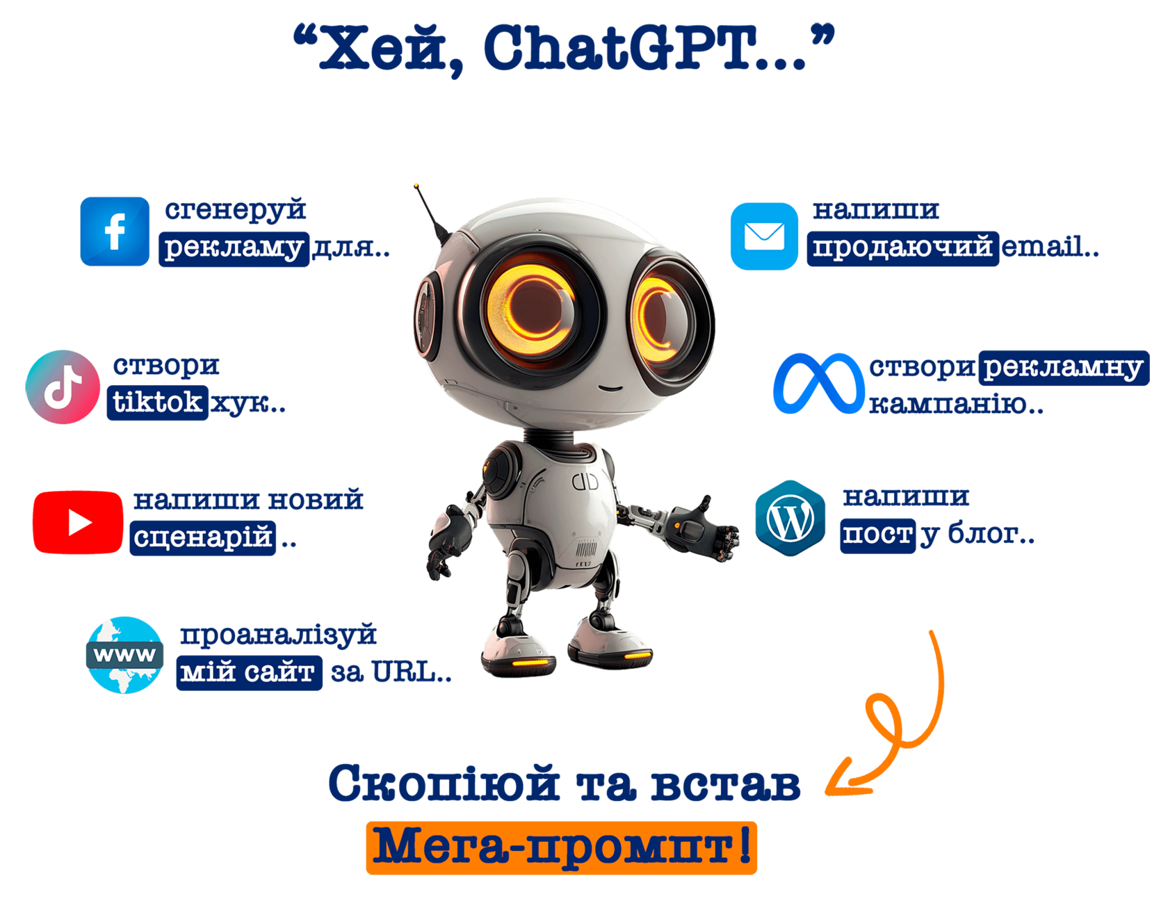 Якщо ви хочете створювати маркетингові стратегії, маркетингові плани, створювати якісний контент, публікації в соціальних мережах, отримувати консультації щодо бізнес-процесів, дізнаватися, чому речі стають вірусними, вивчити маркетингові фреймворки, відповідати на заперечення клієнтів, залучати нових потенційних клієнтів, запускати маркетинг електронною поштою на автопілоті або речі, пов’язані з цими сферами, тоді мегапідказки для маркетингу стануть ідеальним доповненням до вашої роботи!